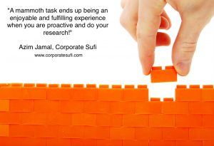 If you have a mammoth task ahead of you, begin with preparation, proactivity and research. Next break the mammoth task
