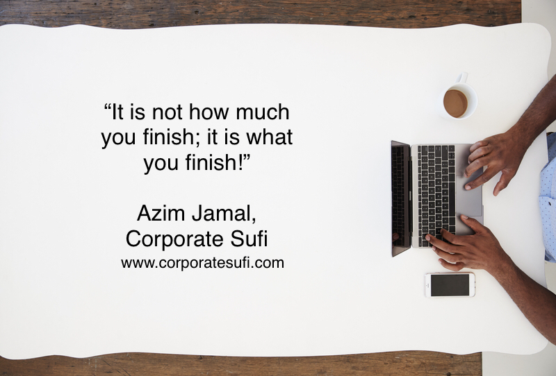 Thus stick to a tight set of priorities which matter the most. Complete them fully and do them well because at the end of the day, it is not how much you finish; it is what you finish!