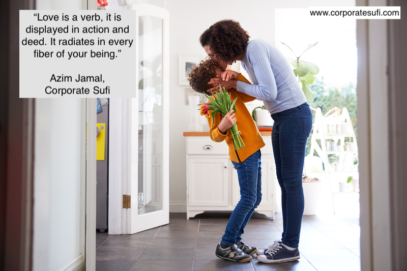Love is not static but reverberates in every pulse of your being. Love is a verb, it is displayed in action and deed. It radiates in every fiber of your being.