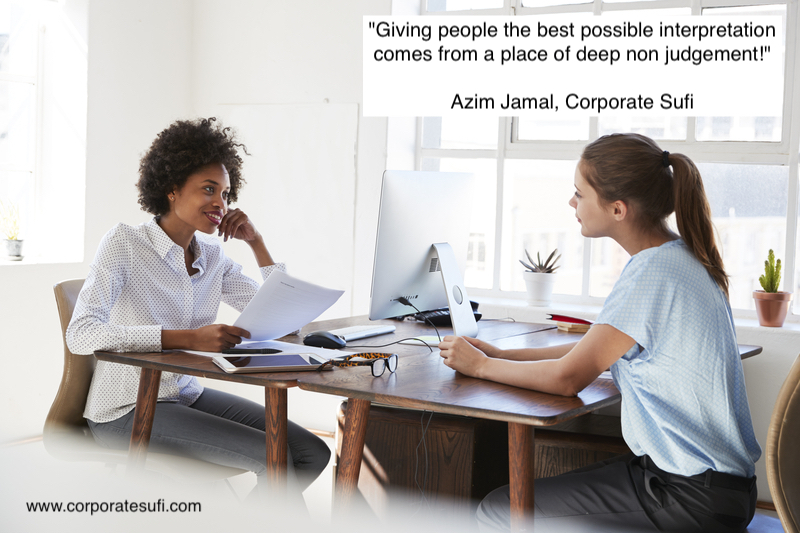The process of giving others the benefit of the doubt begins with non judgement. It is powerful to start by giving others the best possible interpretation of a situation. This step turns your negative energy derived from judgment into positive energy.