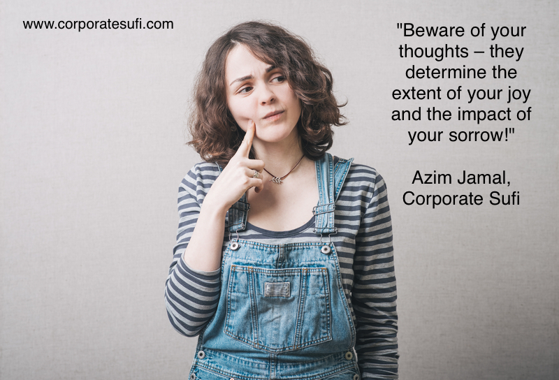 James Allen is his classic book, As a Man Thinketh, said: ”A man is literally what he thinks, his character being the complete sum of all his thoughts.” You are the master of your joy and sorrow. As you think, so you become. Beware of your thoughts – they determine the extent of your joy and impact of your sorrow!