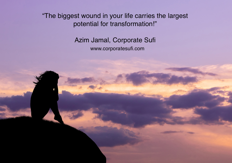 The biggest wounds or biggest crises in our lives carry the largest potential for transformation. They drag us out of our comfort zone, forcing us to explore new ideas and approach to life as the Sufi poet Rumi eloquently says “The wound is the place where the Light enters you.”